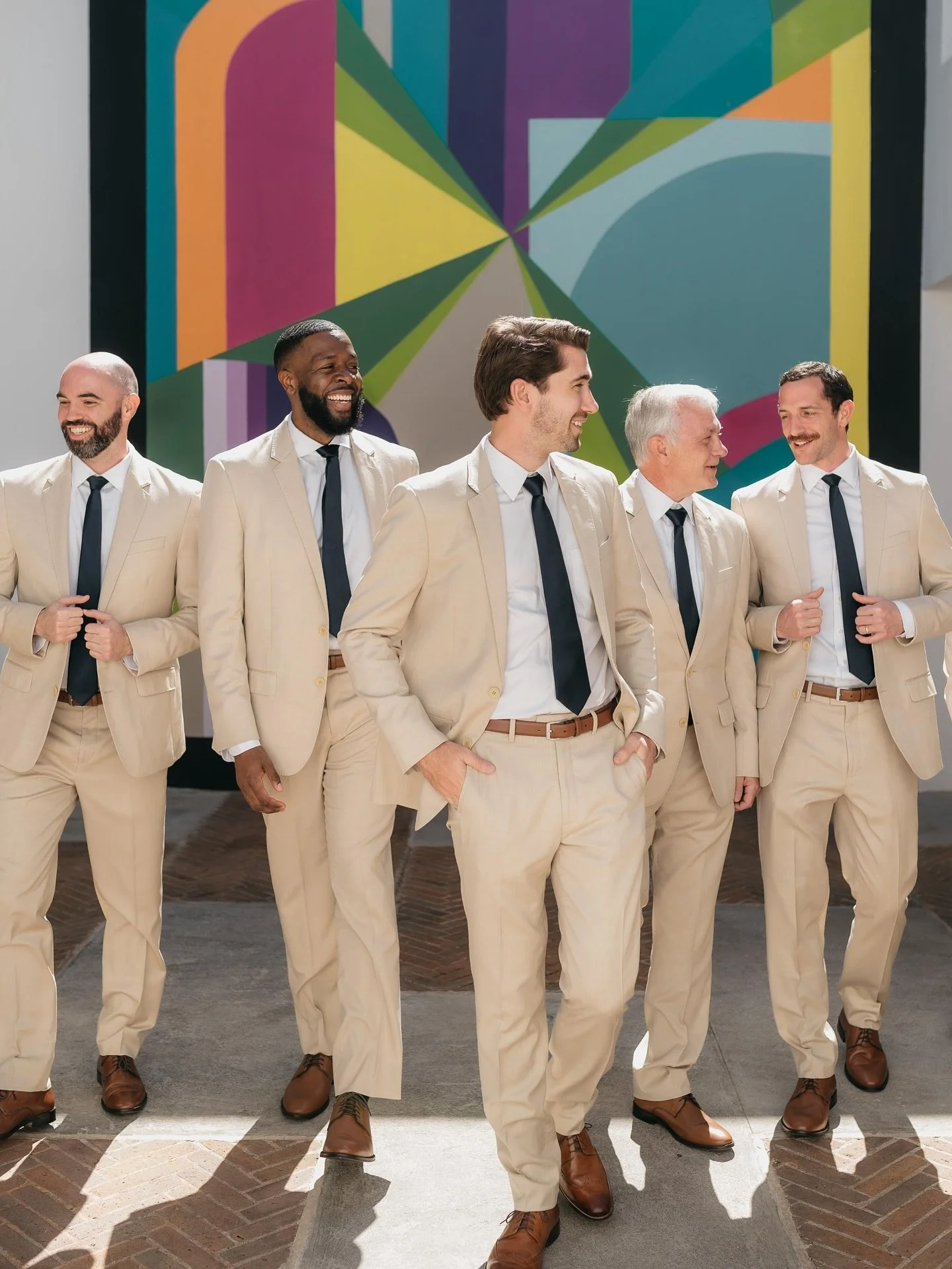 View fullsize The groom and his gentlemen, timeless style at Kuxtal Tercera.